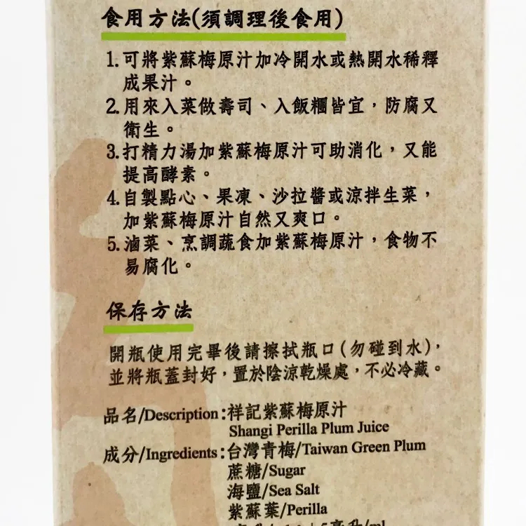 須調理後食用 可將紫蘇梅原汁加冷開水或熱開水稀釋成果汁。