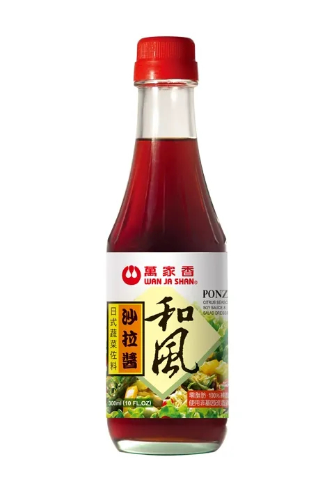 以100%天然豆麥醬油為基底,添加檸檬汁,獨門調配國內第1款無油、零脂肪沙拉醬