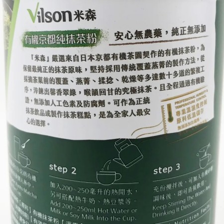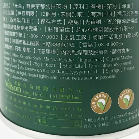 米森嚴選來自日本京都有機茶園契作的有機抹茶粉,為保留最純正的抹茶原味,堅持採用傳統覆蓋蒸菁的製茶方法,從採摘茶葉前的覆蓋、蒸菁、揉捻、乾燥等多達數十多道的繁瑣工序,淬鍊出馨香翠綠,喉韻回甘的究極抹茶。
