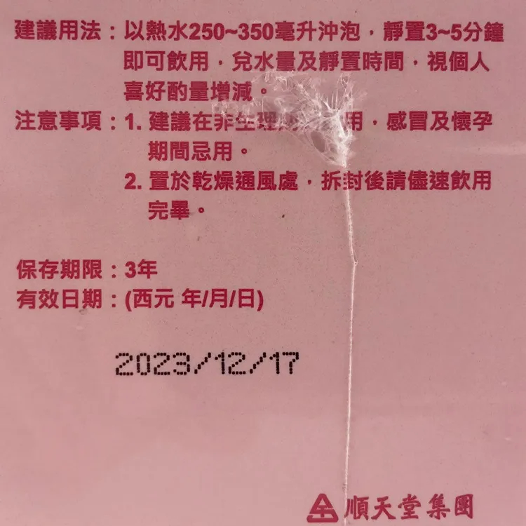 【注意事項】 建議在非生理期間飲用,感冒及懷孕期間忌用。 置於乾燥通風處,拆封後請速飲用完畢。