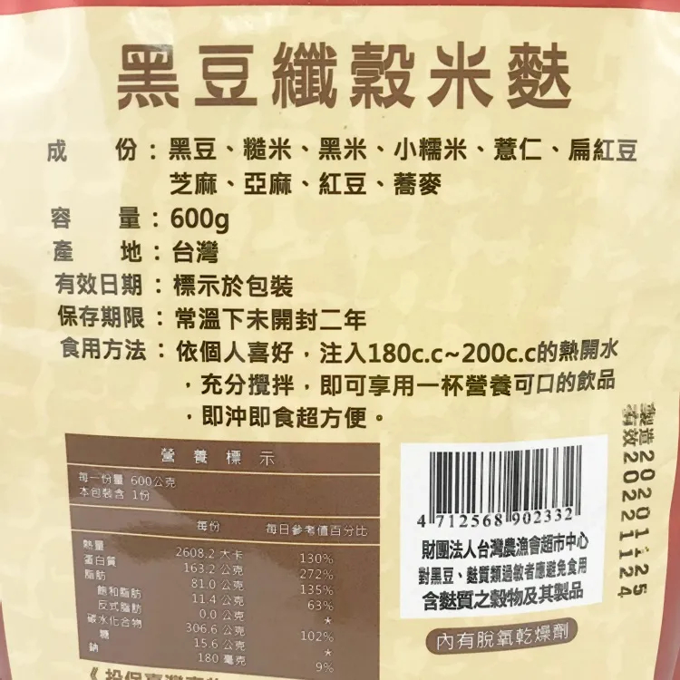【過敏原資訊】本產品含有黑豆、麩質之穀物及其製品,不適合其過敏體質者食用