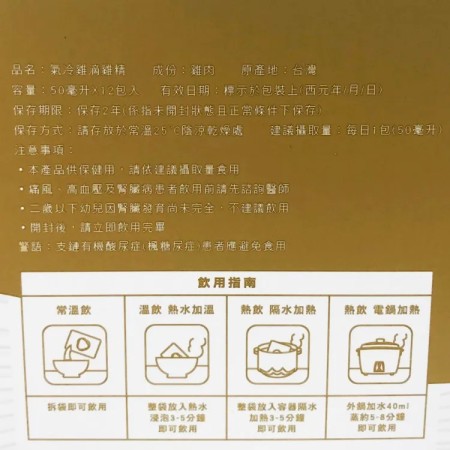 - 名稱:氣冷雞滴雞精(12入禮盒)
